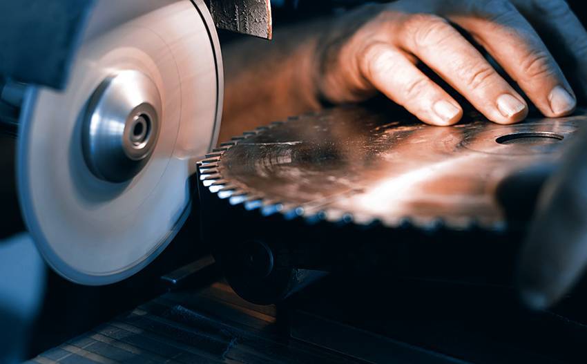 - вращаются и затачивающие элементы установки, и круговая пила;