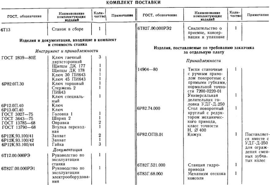Для эффективной эксплуатации 6Т13 описание станка в документации иллюстрируется схемами: кинематической, расположения подшипников, смазки, строповки. Вторая часть руководства посвящена электрооборудованию, в ней приведена принципиальная электрическая схема и спецификации, по которым следует подбирать запчасти.