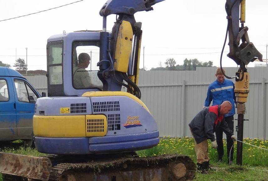 - на точках входа свай копают небольшие углубления (15-20 см) для более легкого входа лопастей в грунт;